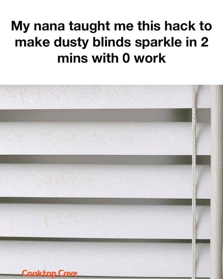 Start by closing the blinds completely and use a microfiber cloth or a sock over your hand to wipe each slat from top to bottom. For quicker cleaning, lightly spray the cloth with a mix of warm water + a few drops of dish soap, instead of spraying the blinds directly (this prevents dripping and streaks). After wiping one side, rotate the blinds and repeat on the other side.