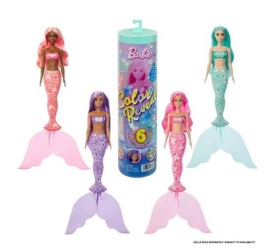 It’s a mystery mermaid Barbie doll that changes color in water and comes with surprise accessories—part toy, part unboxing experience.