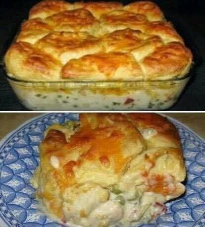 Chicken biscuit casserole is a comforting baked dish that combines creamy chicken filling with soft, fluffy biscuits on top. It’s popular as an easy family dinner because it’s filling, simple, and made in one pan.