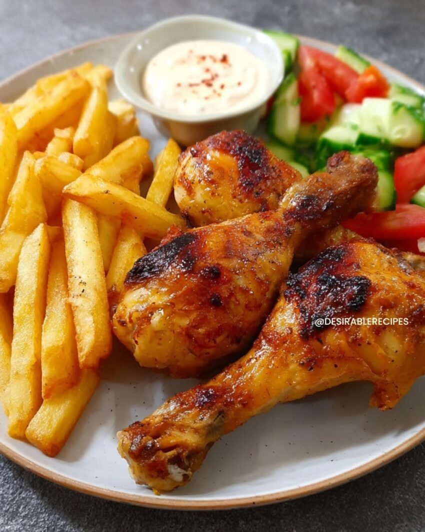 A Chicken Leg, French Fries, and Salad meal is a classic fast-food style combo that balances protein, carbs, and freshness in one plate.