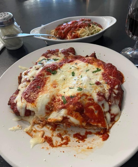 A classic Italian-American baked dish: crispy breaded chicken, rich marinara sauce, and melted cheese.