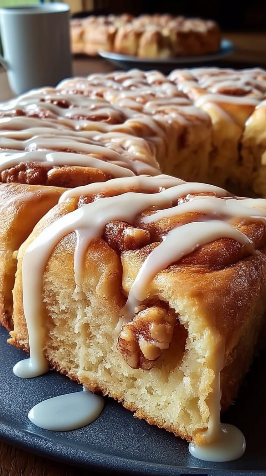 A cinnamon roll with walnuts is a soft, fluffy sweet roll filled with cinnamon sugar and crunchy walnuts, then baked and topped with a sweet glaze or cream cheese icing. It’s a richer, nuttier twist on the classic cinnamon roll.