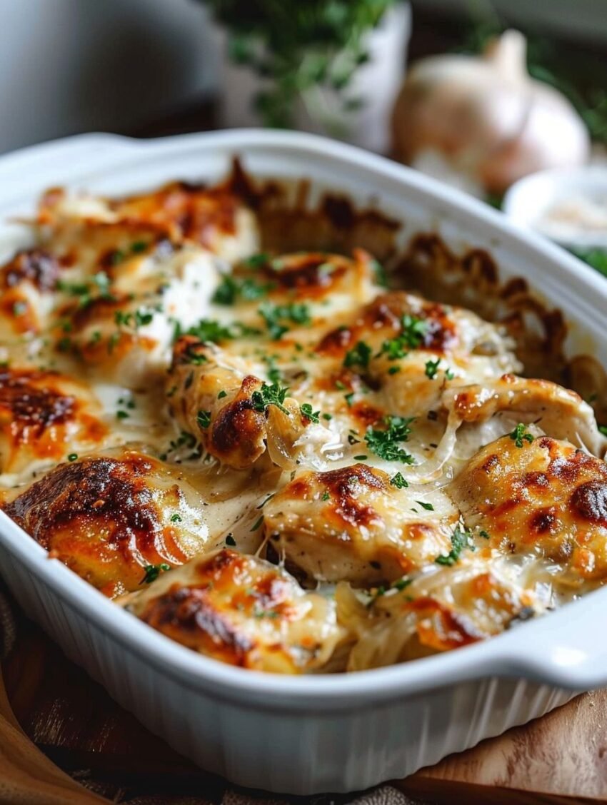 A rich, comforting oven bake with tender chicken, soft potatoes, and a creamy garlic-herb sauceβall in one dish.