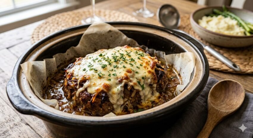 crockpot French onion meatloaf is a slow-cooked comfort food that combines classic meatloaf with the rich, savory flavor of French onion soup.It’s tender, juicy, and packed with caramelized onion flavor.