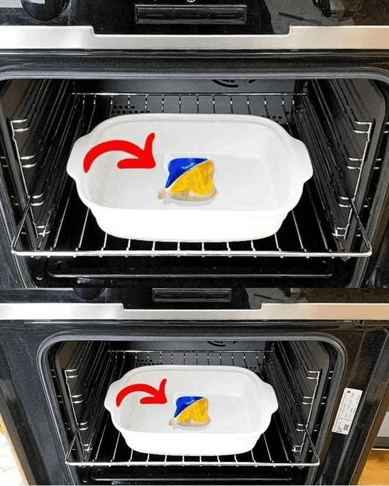 It’s a useful grease-removal hack for tough oven dishes, but it should be used carefully because dishwasher tablets are strong chemical cleaners—not mild household soap.