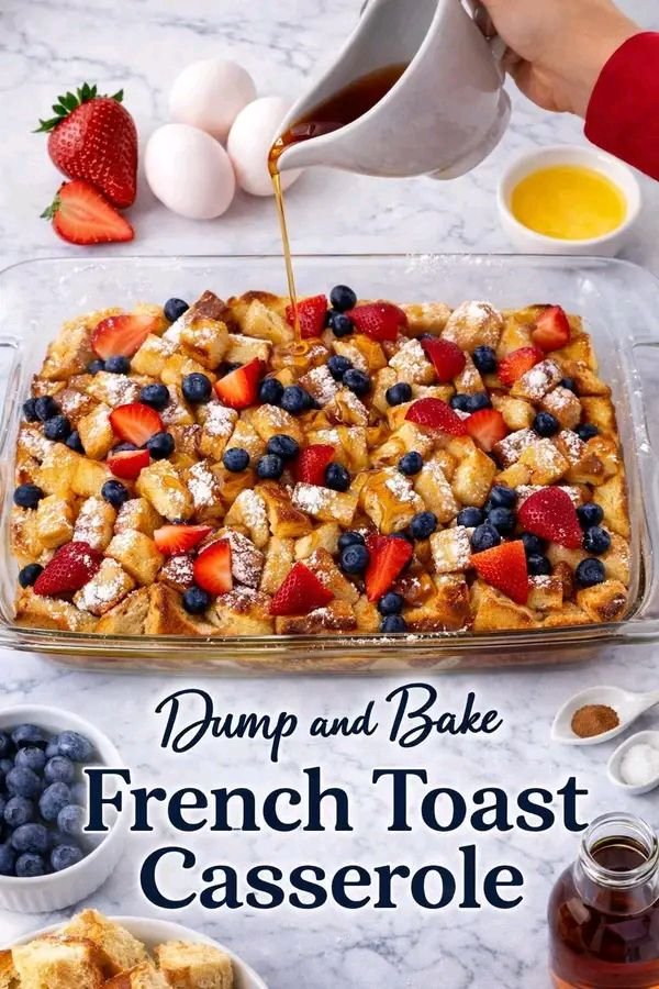 Here’s a super easy Dump-and-Bake French Toast Casserole—no fancy steps, just mix, pour, and bake. Perfect for breakfast, brunch, or when you want something cozy without effort.