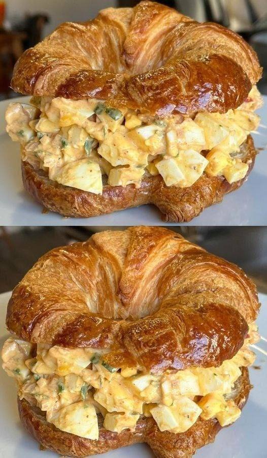An egg salad croissant sandwich is a rich, creamy twist on the classic egg salad sandwich—served inside a buttery, flaky croissant instead of regular bread.