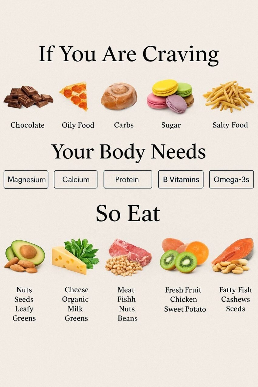 Here’s a simple Food Cravings Chart that links common cravings to what your body might be signaling—and healthier ways to respond.