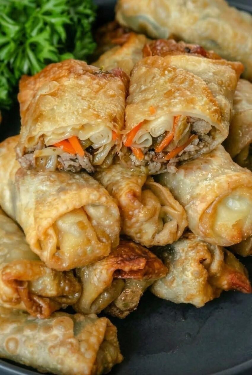 Freshly fried egg rolls are crispy, golden rolls filled with savory meat and vegetables, served hot so the wrapper stays crackly and the inside stays juicy. They’re a popular appetizer in many Asian-style meals and are best eaten right after frying.