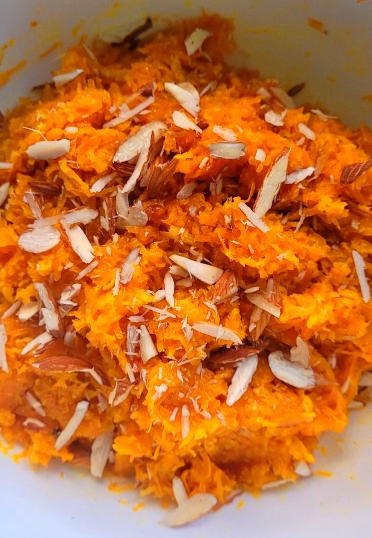 Gajar ka halwa 🥕🍮 (also called carrot halwa) is a classic South Asian dessert made by slow-cooking grated carrots in milk, sugar, and ghee.