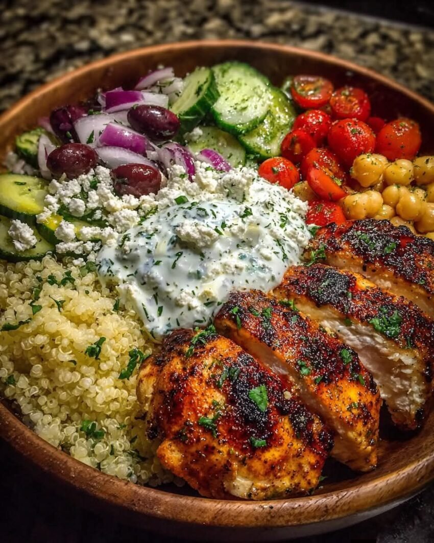 A Greek Chicken Gyro Bowl is a deconstructed gyro served in a bowl instead of pita bread. It has juicy seasoned chicken, fresh vegetables, rice or greens, and a creamy tzatziki sauce. Itβs fresh, hearty, and Mediterranean-inspired.