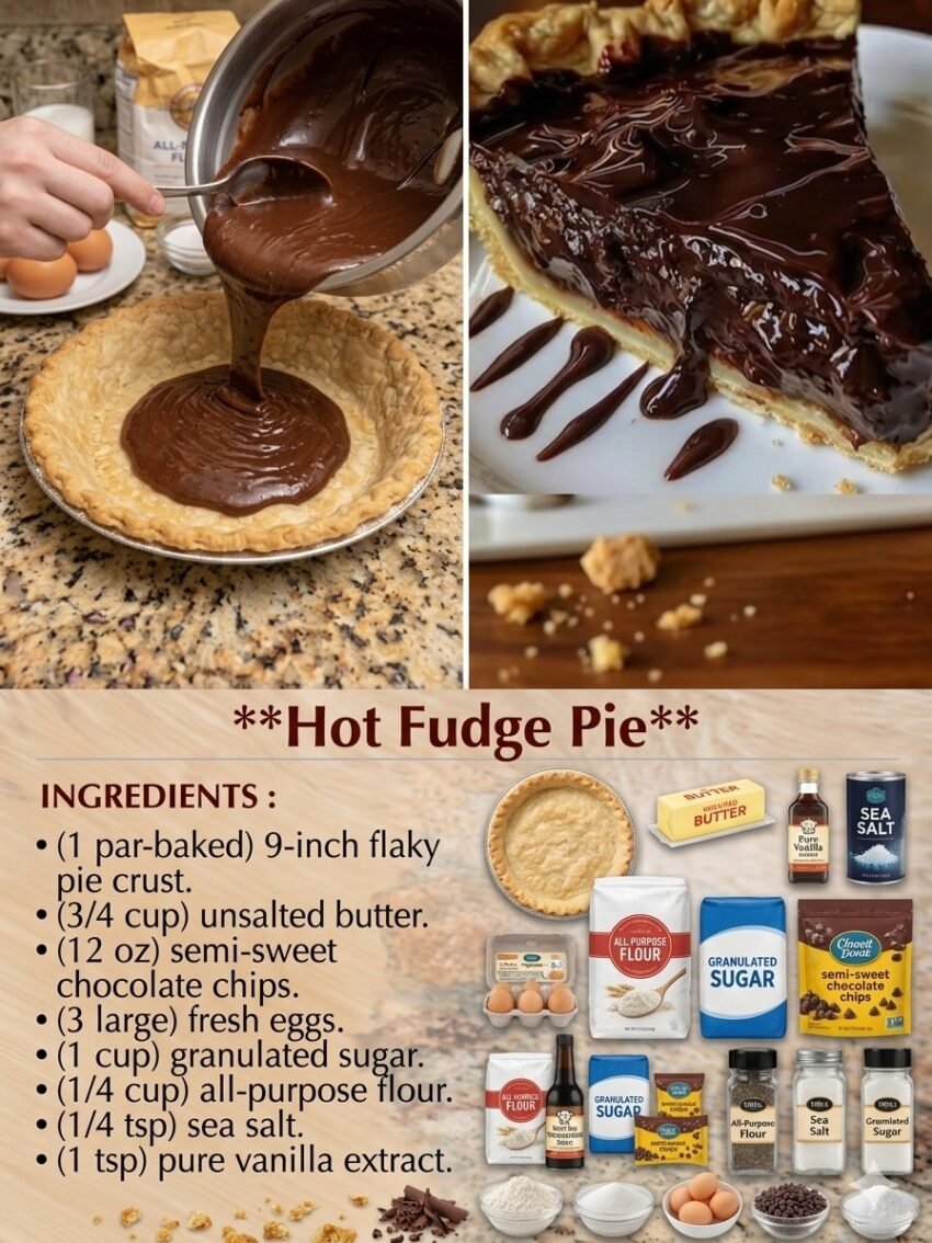 Hot fudge pie is a rich, gooey chocolate dessert that sits somewhere between a brownie and a molten chocolate cake. The center stays soft and fudgy while the top forms a light crust.
