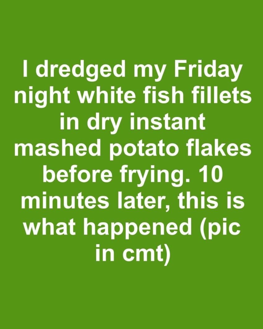 Using instant mashed potato flakes as a breading for white fish fillets actually works really well—it gives a light, crispy coating with a mild flavor and good crunch.