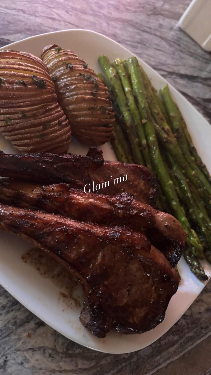 • Plate lamb chops with roasted potatoes and asparagus