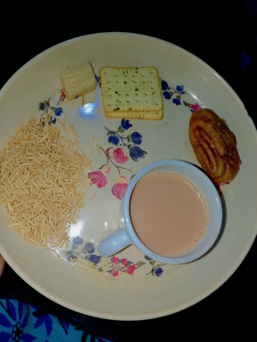 On the stove, masala chai simmered gently—tea leaves swirling in milk and water, turning the pot into a warm, spiced rhythm. Cardamom cracked open its sweetness, ginger added a quiet heat, and a hint of cinnamon lingered like a memory in the steam.