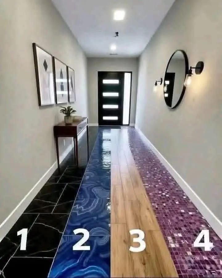 modern residential hallway showcasing four different flooring options for an entryway remodel.