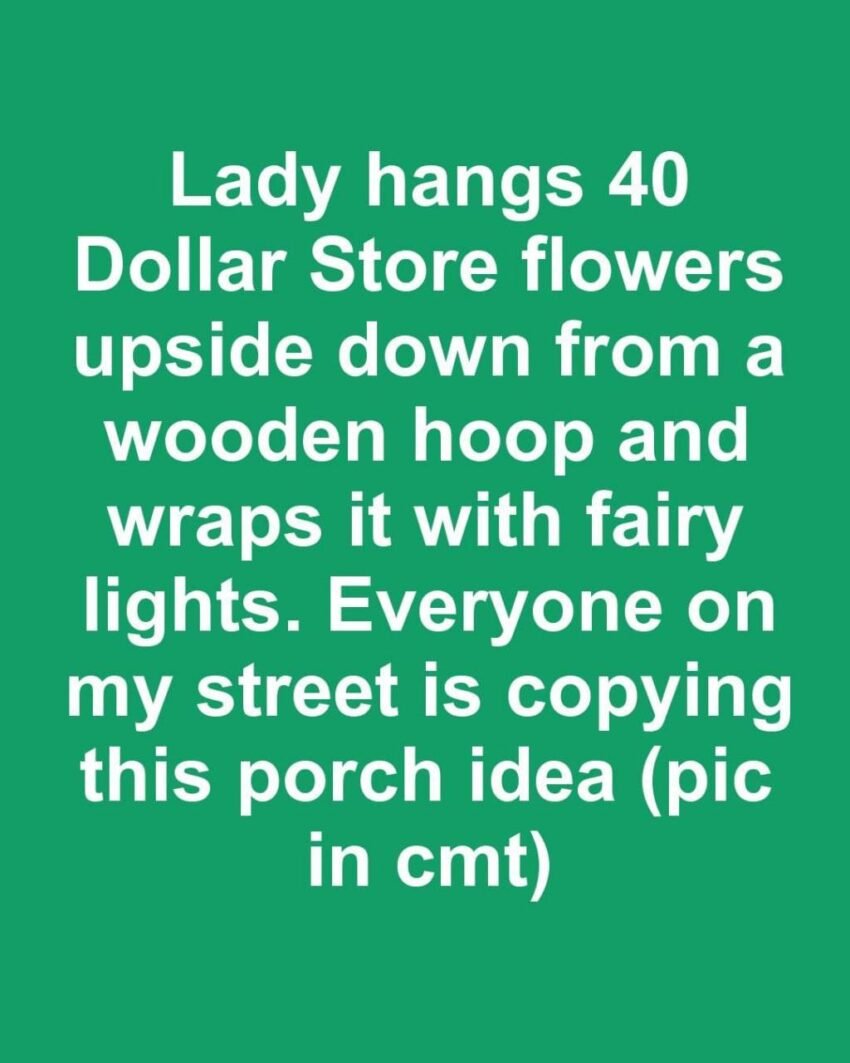 - Hula hoop + fairy lights + fake flowers + zip ties