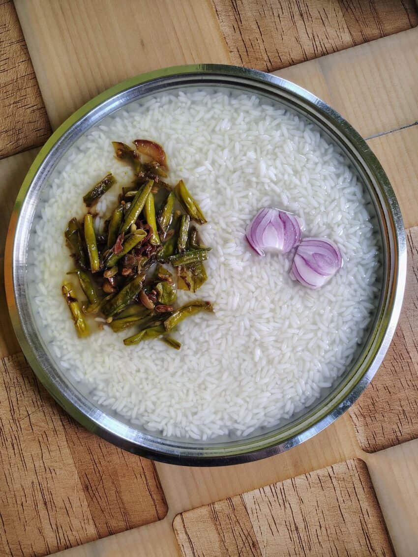 panta bhat is a traditional South Asian dish made from leftover rice soaked in water and left to ferment overnight.