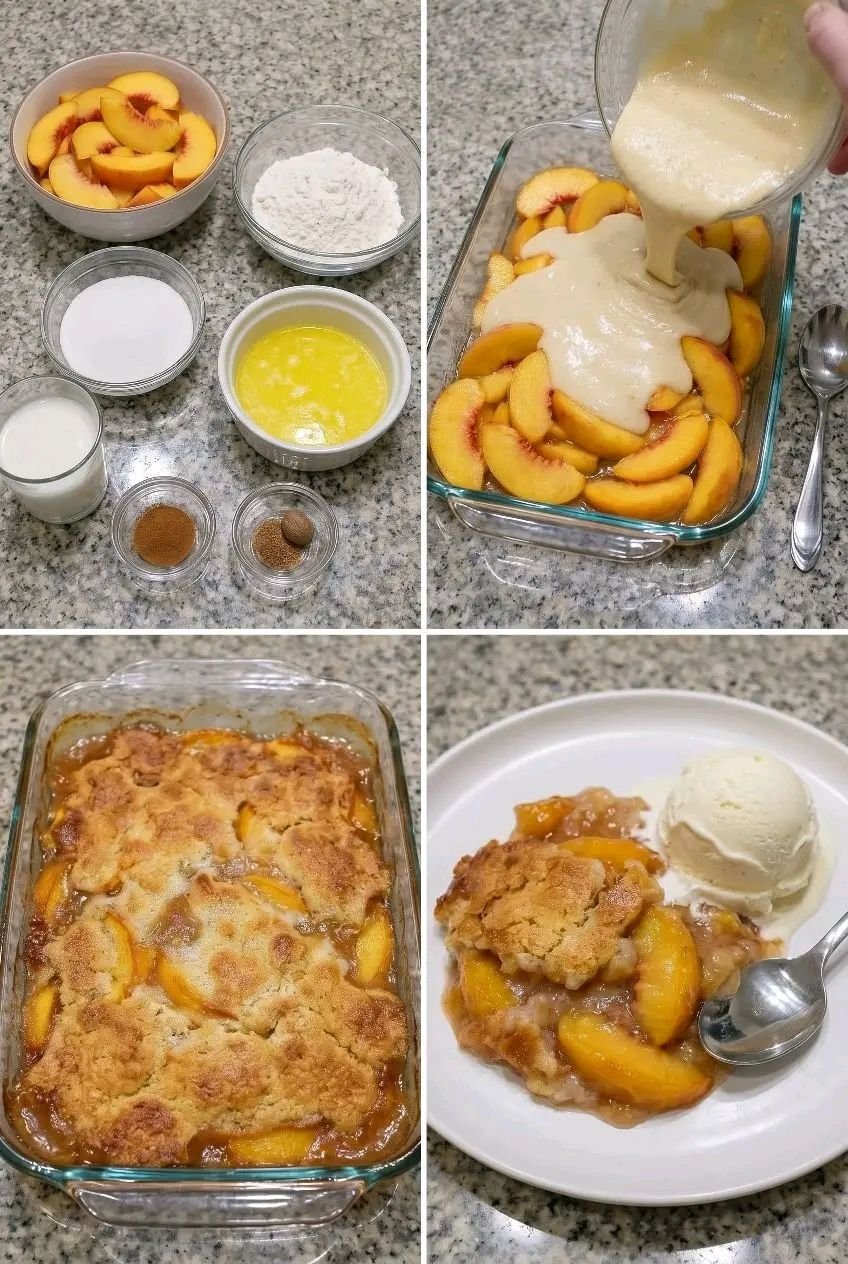 Peach cobbler is a warm, baked dessert with sweet peaches underneath and a soft biscuit or cake-like topping. It’s rustic, easy, and very forgiving—perfect for home baking.