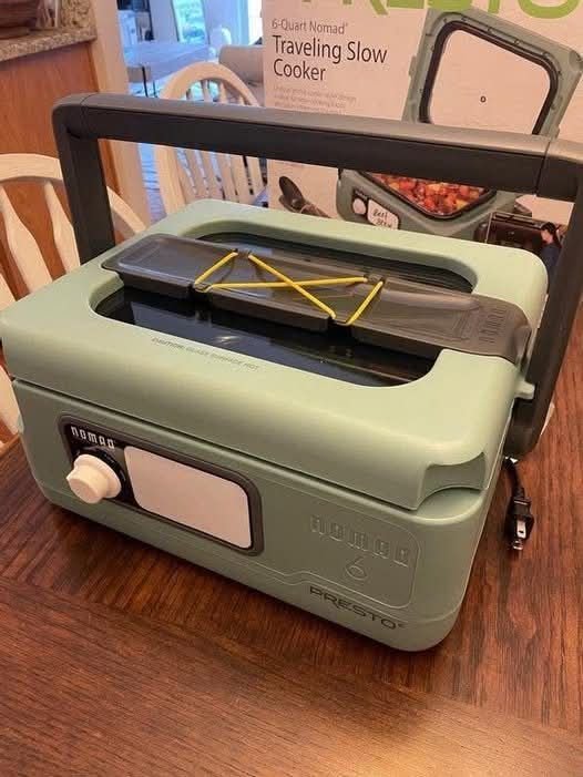 The Presto Nomad Traveling Slow Cooker is a portable, spill-proof slow cooker designed for carrying hot meals safely to events, travel, or gatherings—basically a slow cooker built like a “food cooler.”