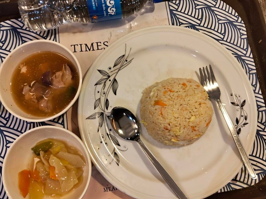 • 🍚 Chicken fried rice (soy sauce + egg + veggies)