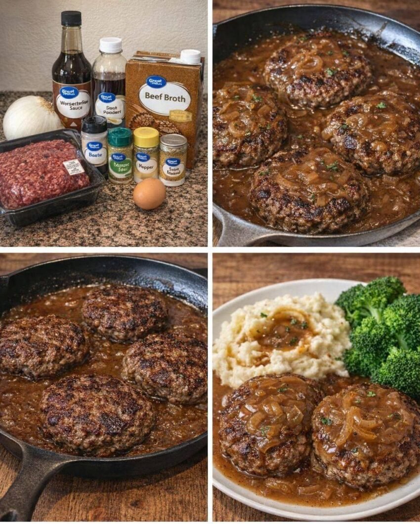 Salisbury steak and rice is a classic comfort meal featuring seasoned ground beef patties smothered in rich brown gravy, served over fluffy rice. Itβs hearty, budget-friendly, and very satisfying.