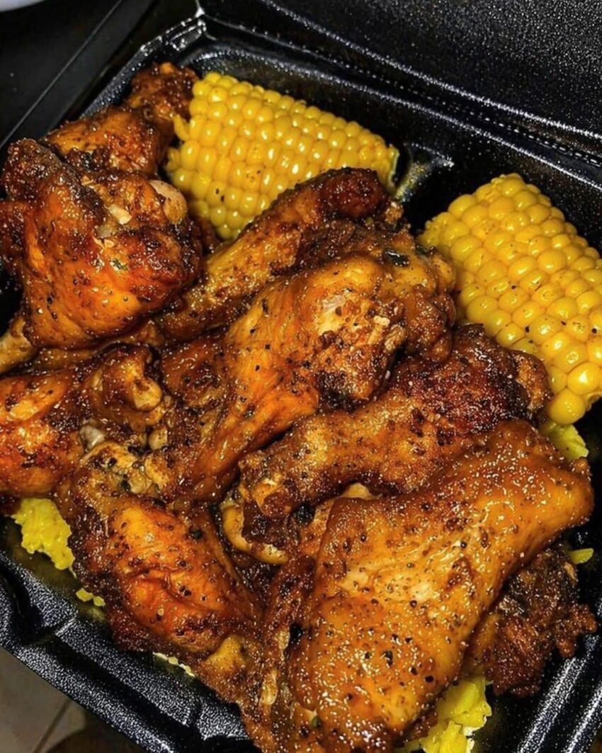This is a classic comfort-style meal pairing crispy, seasoned chicken wings with sweet, buttery corn on the cob. It’s bold, smoky, slightly spicy, and perfect for parties, game nights, or casual dinners.