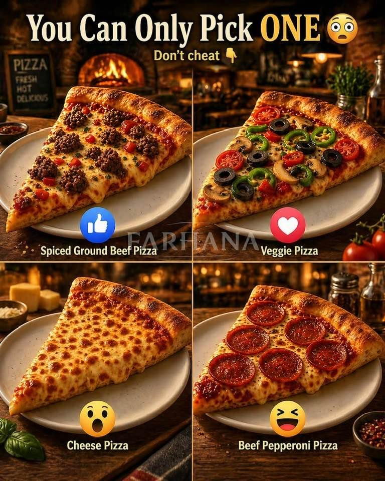 Spiced Ground Beef Pizza, Veggie Pizza, Cheese Pizza, Beef Pepperoni Pizza