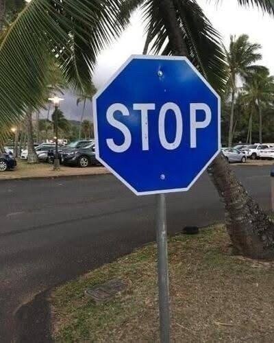 A stop sign is a red, octagonal traffic sign that tells drivers they must come to a complete stop before continuing through an intersection .
