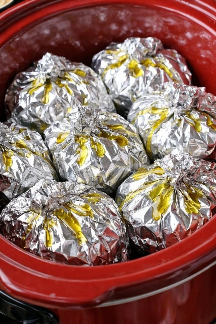 Cooking something wrapped in aluminum foil inside a slow cooker (crockpot) is a technique used to separate or protect food while it cooks slowly in moist heat.